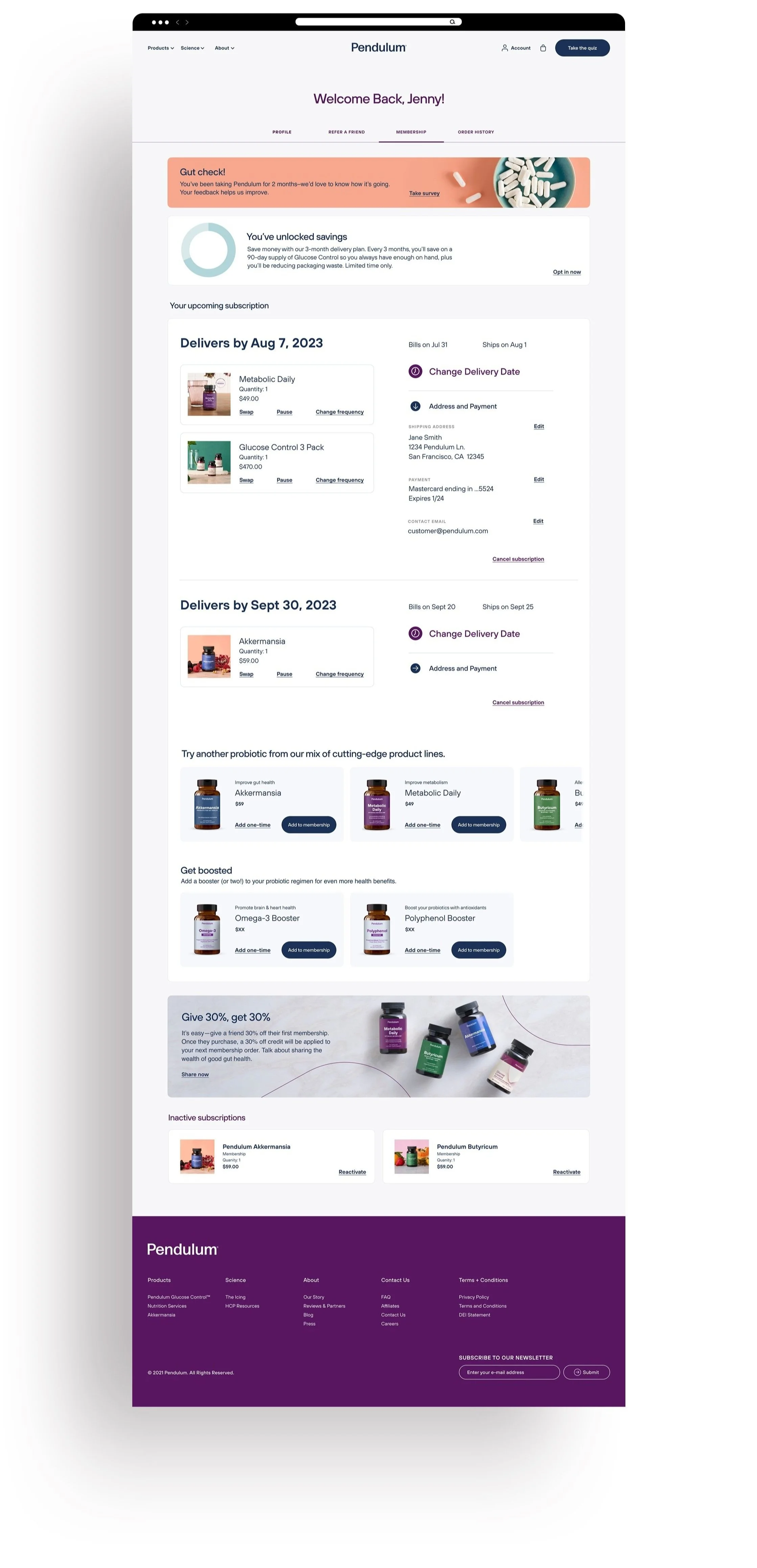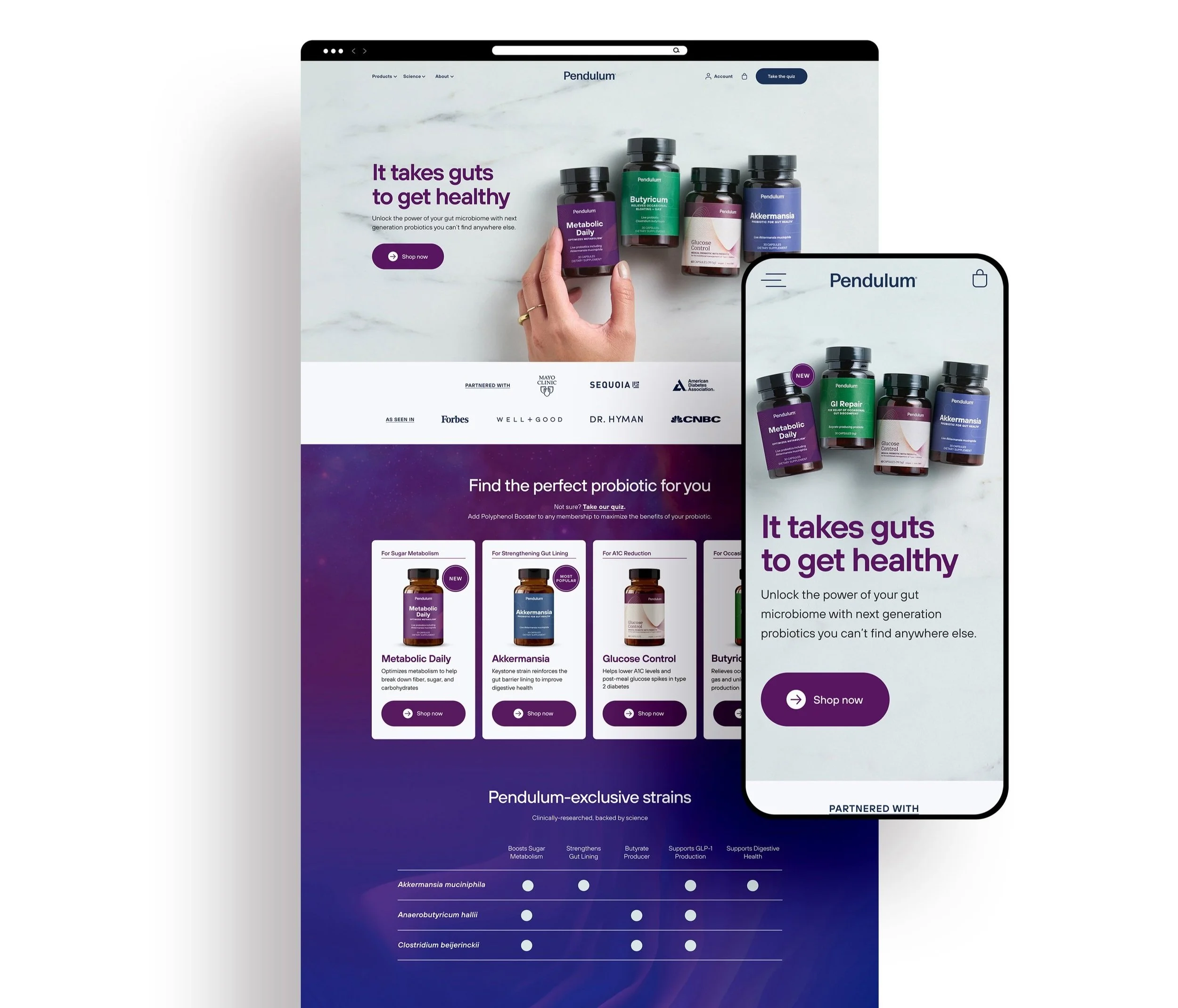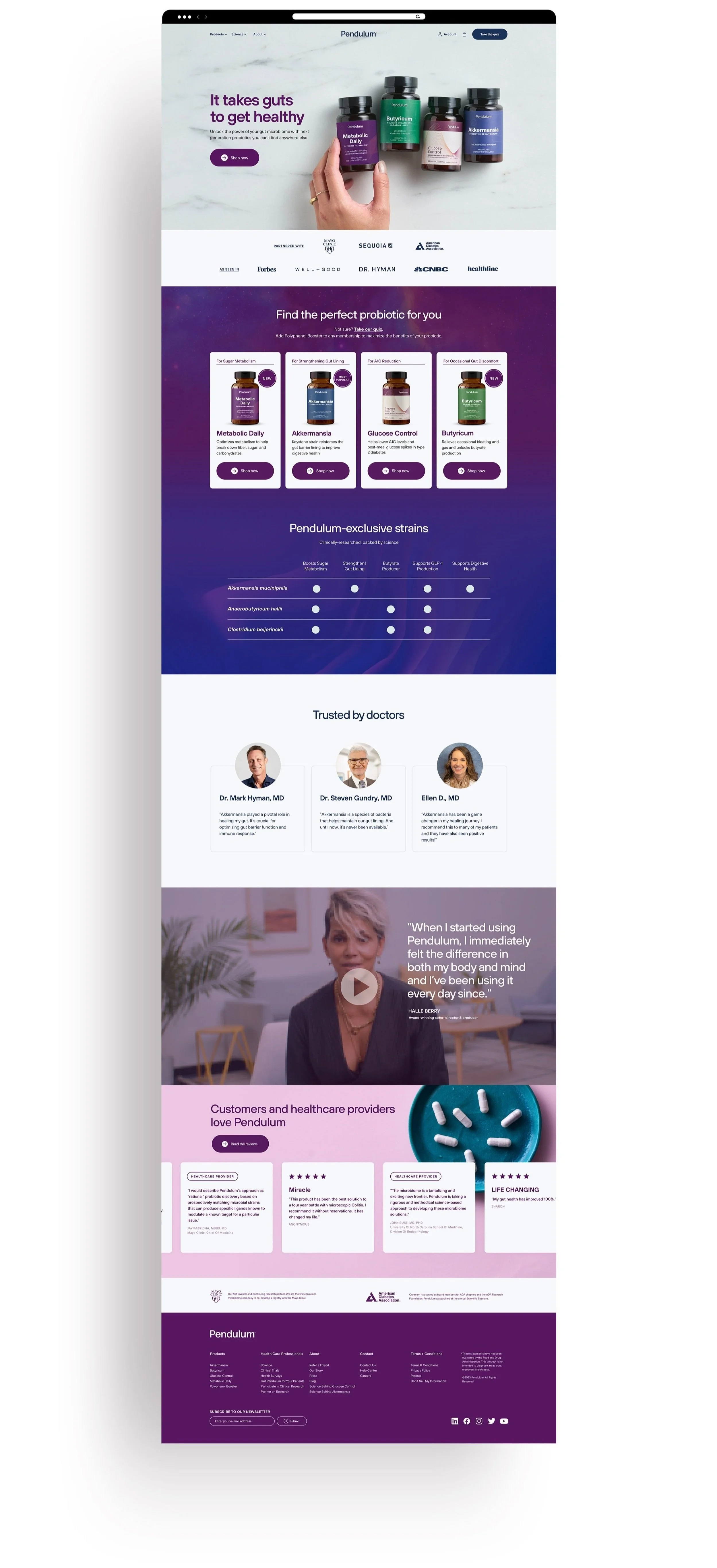 Pendulum Therapeutics is committed to developing novel interventions that target the human microbiome to improve the lives of patients suffering from a variety of diseases. In 2023 I worked with them on a variety of projects — all with the goal of bringing a more modern and clean aesthetic to their brand.